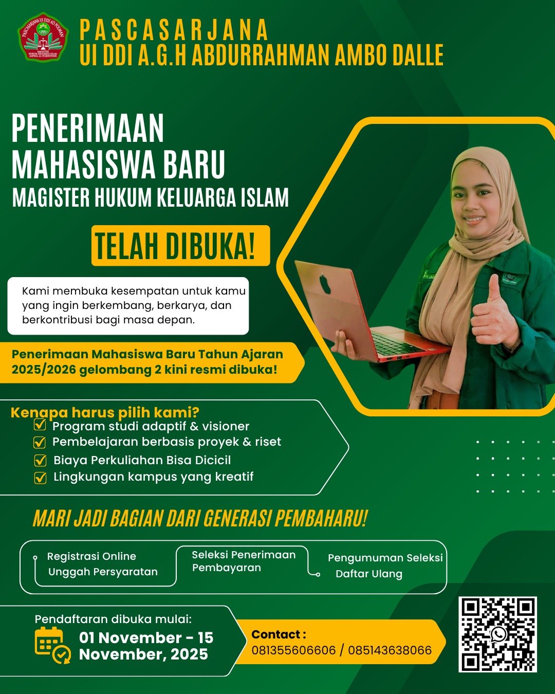 Kami membuka kesempatan bagi Anda yang ingin berkembang secara akademik, berkarya dalam bidang hukum Islam, dan memberikan kontribusi positif bagi masyarakat. Kesepakatan dalam program Magister Hukum Keluarga Islam yang dirancang untuk mencetak generasi pembaharu yang berintegritas dan visioner.